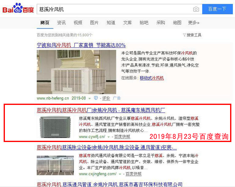 慈溪冷風機 百度(PC)自然排名第1名,360搜索、搜狗、手機搜索等均也有比較好的排名...